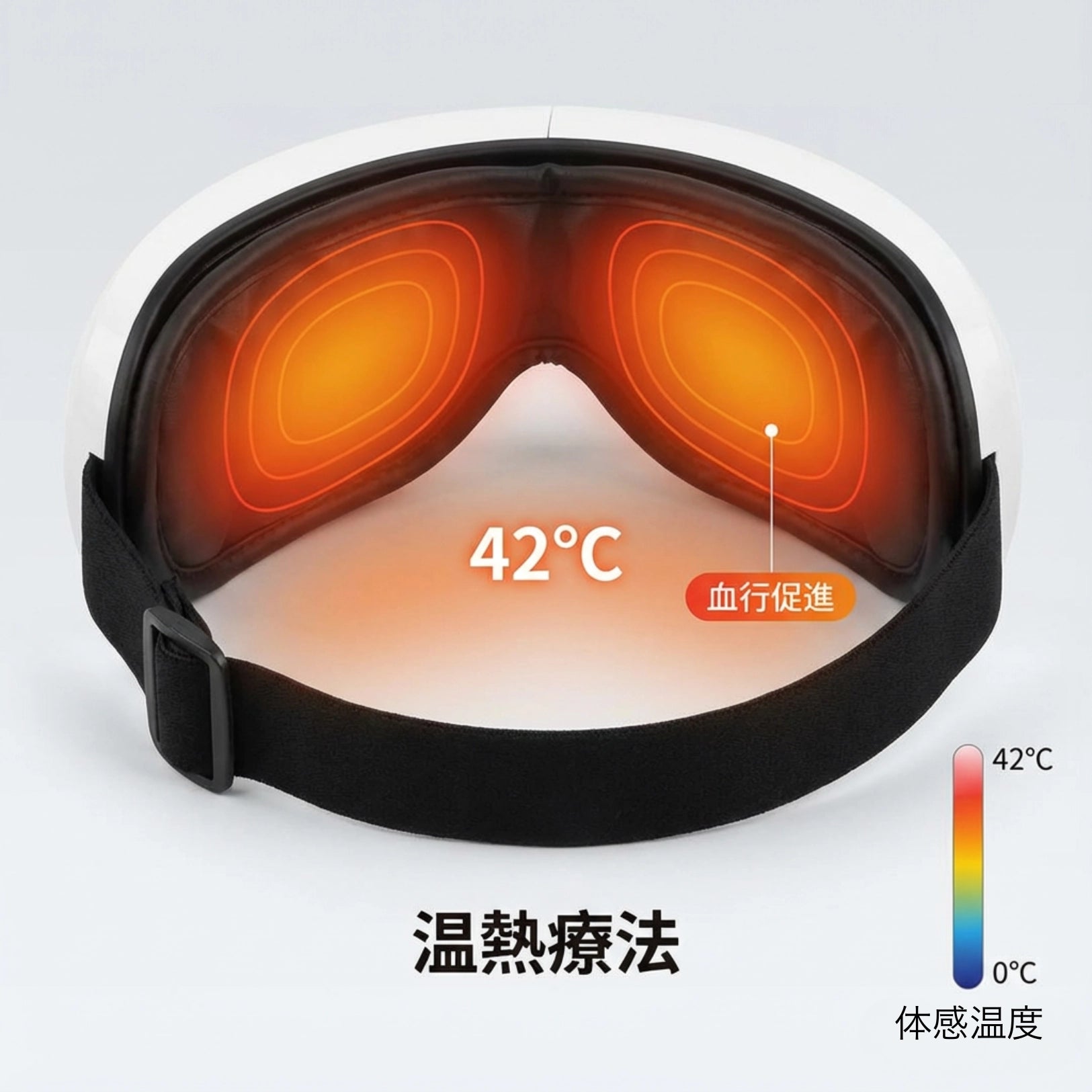 4Dエアバッグと42°C温熱の組み合わせで、使用直後から目の疲れの軽減を実感される方がほとんどです。1,250件のレビューで平均4.80の高評価をいただいています。