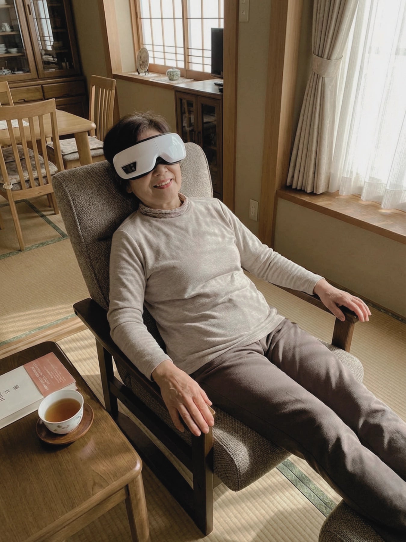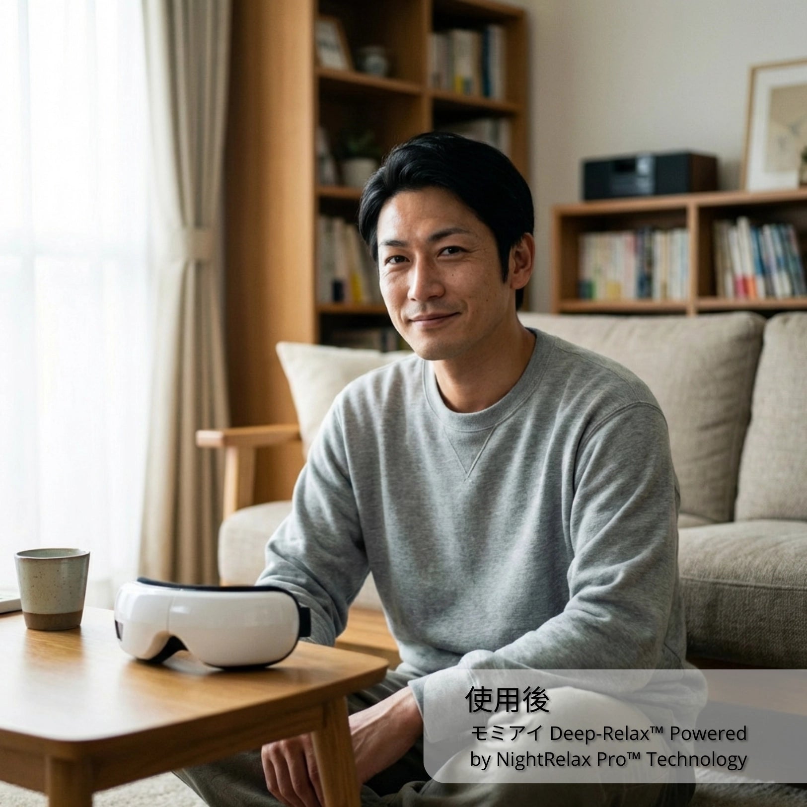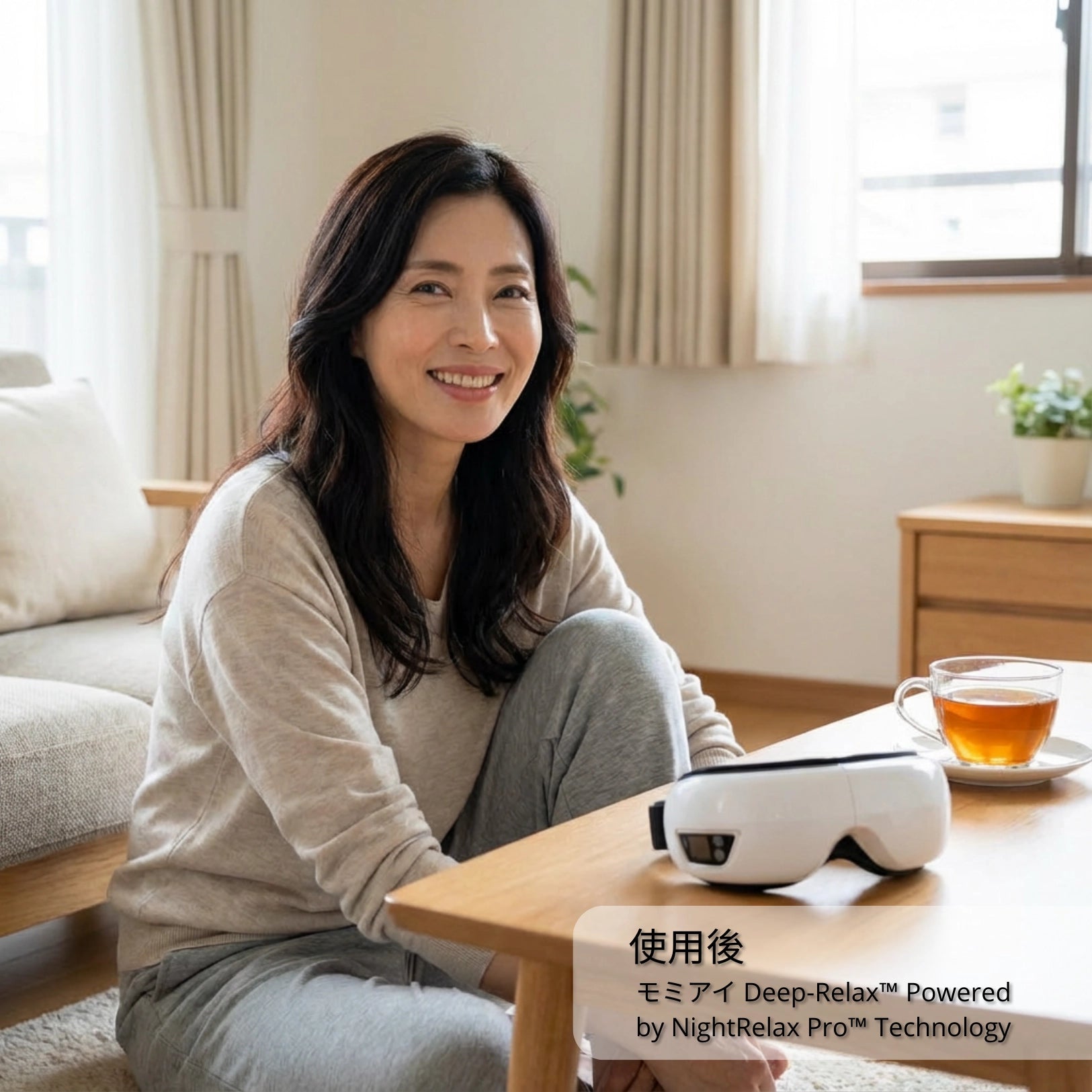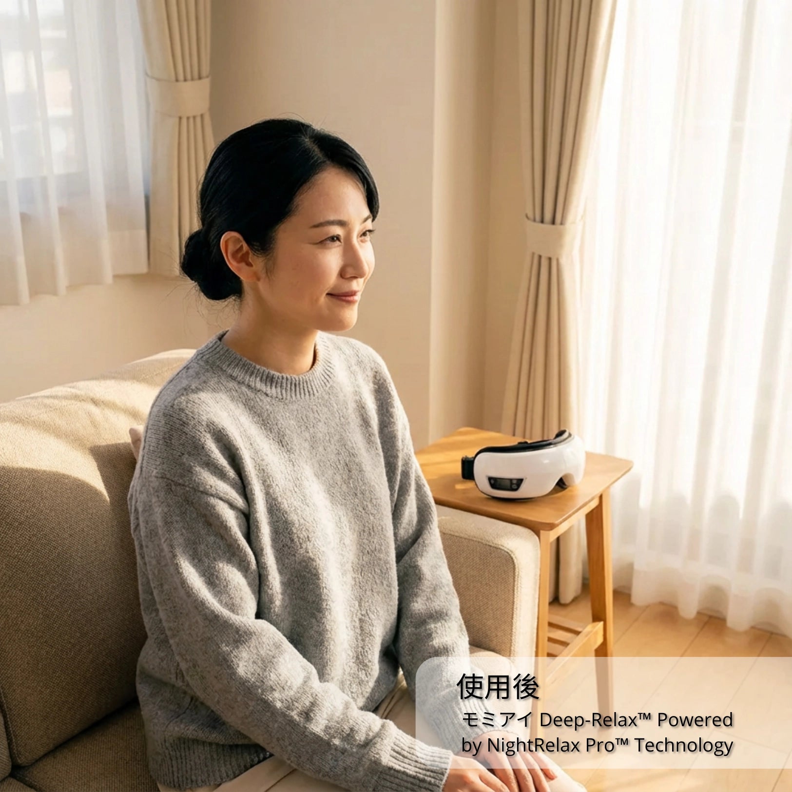 そのまま眠りに落ちても大丈夫。目覚めた時には、目の奥の重さが消え、スッキリとした朝を迎えられます。