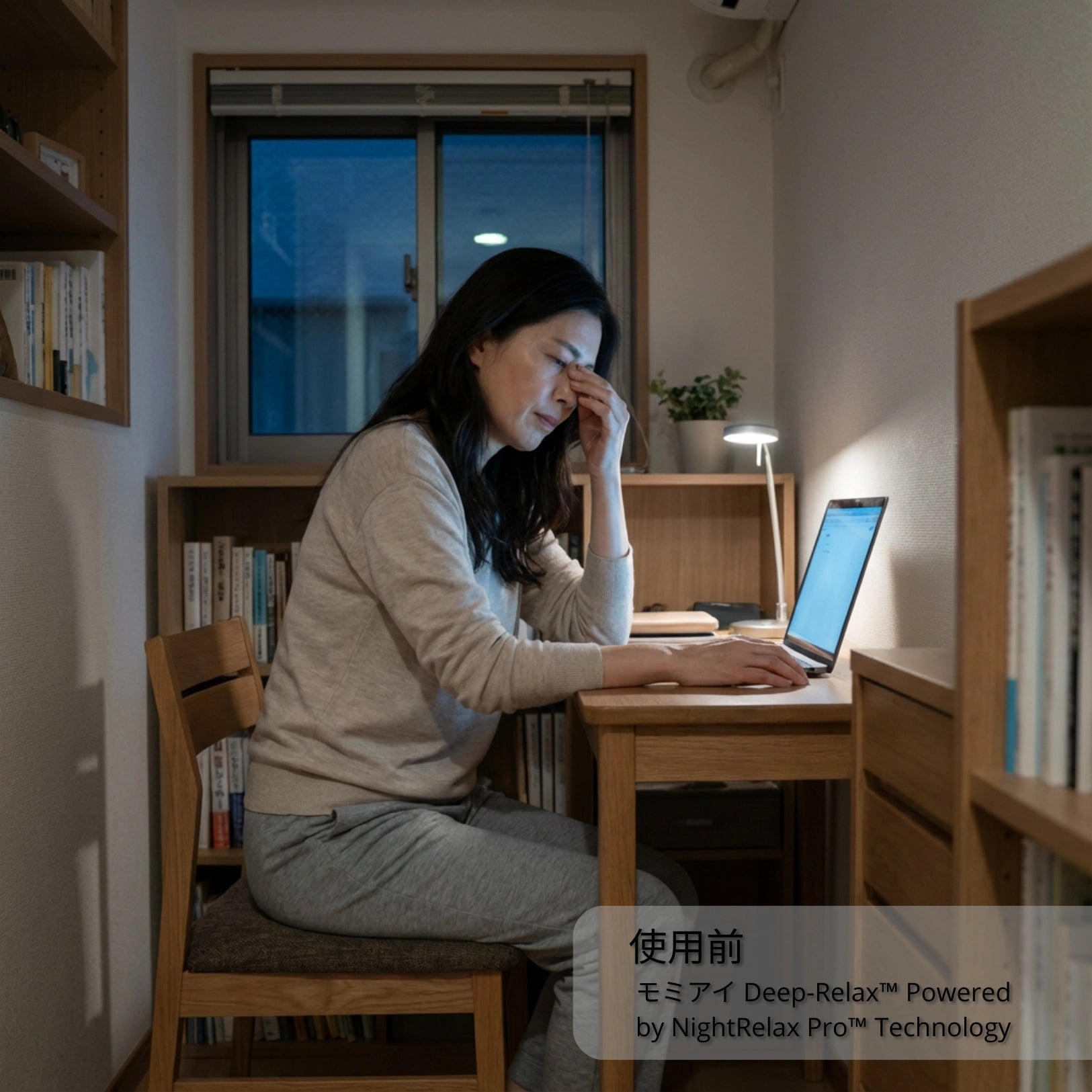 競合製品の平均50-60dBに対し、NightRelax Proは静音設計。就寝前でも、家族が寝ている横でも、安心して使えます。