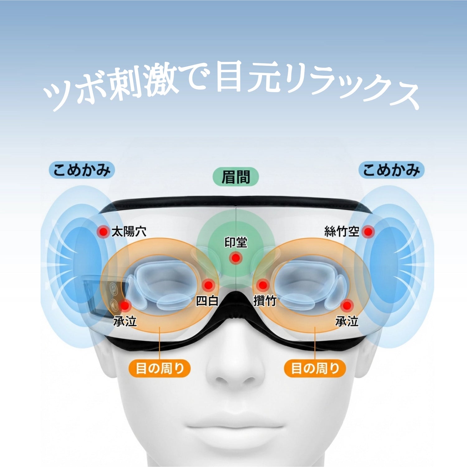 眼科専門医の監修のもと、縦横3cm以上の窪みを設けた安全設計を採用。眼球への直接的な圧迫を避け、こめかみと目の周りの筋肉のみをマッサージします。