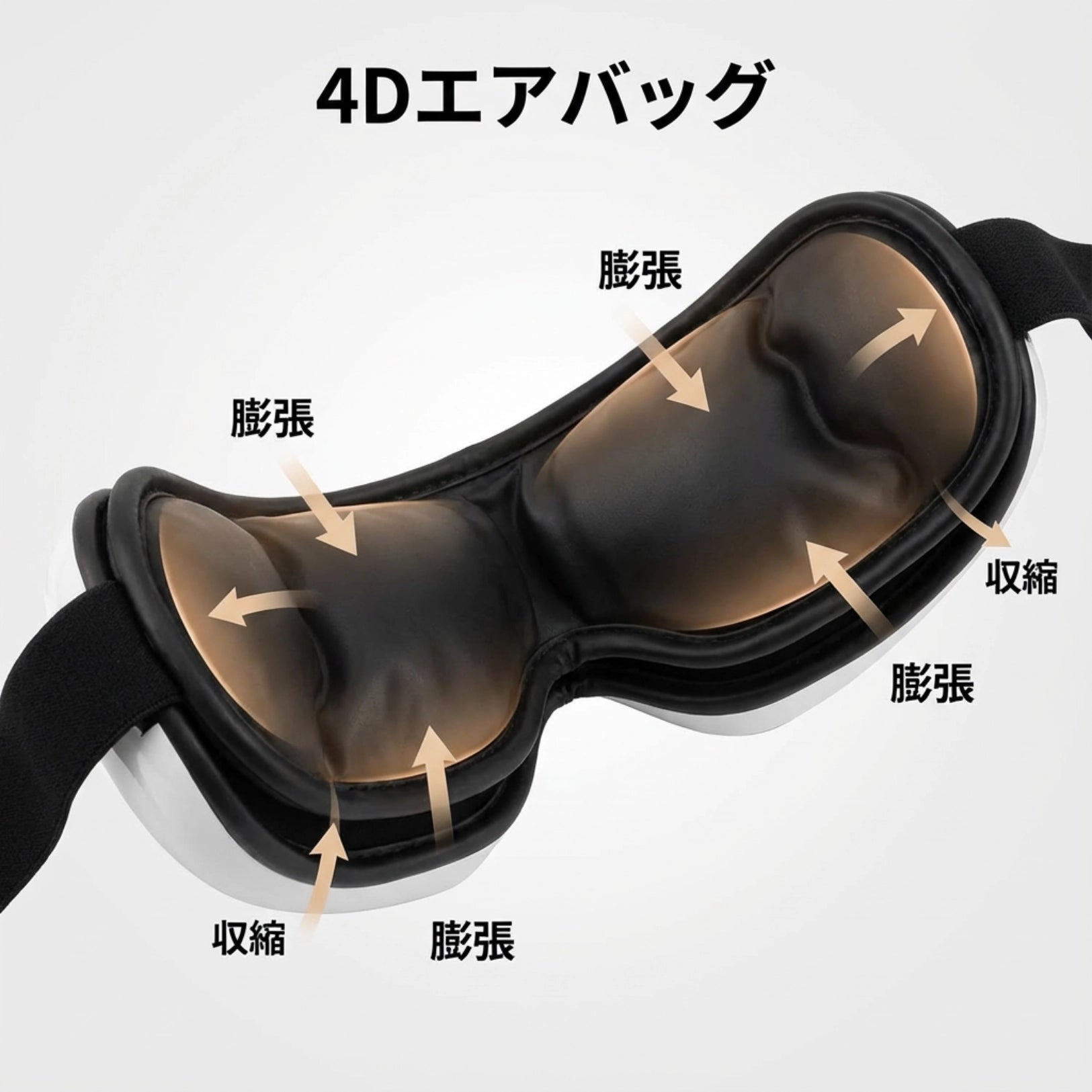 その瞬間から、4Dエアバッグがこめかみと目の周りをしっかりと包み込みます。