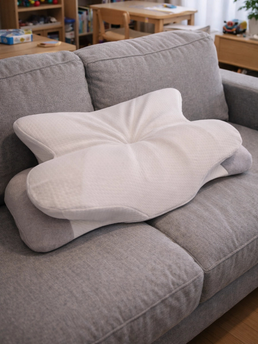 バタフライ形状のため、一般的な枕カバーは合わない場合があります。専用の洗濯可能カバーが付属していますので、そちらをご使用ください。清潔に保てて便利です。